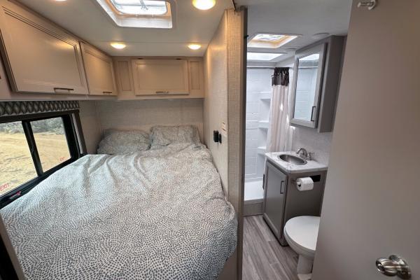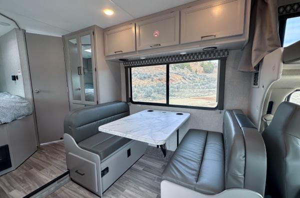 This RV is a fully equipped Class C motorhome that has everything you need to feel at home while travelling. The Thor Motor Coach Four Winds 22e with automatic transmission is 24'1" long and 11' high. It is an RV that allows you to enjoy large, comfortable spaces while on your road trip. Its interior features a living room, a kitchen, a full bathroom, a closet and sleeping areas. The living area features a dinette table. The kitchen is equipped with three gas hobs, a sink, a microwave and a 170-litre fridge. The bathroom has a washbasin, a toilet and a shower with hot water. The sleeping areas consist of three double beds, which can accommodate up to 4 adults and 2 children. The RV also has rear storage with a capacity of 7 gal, integrated heating, and air conditioning and comes with all the services offered by Indie Campers, such as 24/7 support and roadside assistance, a cleaning kit and a kitchen kit. - automatic 3 left Listed Mar 10 2025 TCID 584090